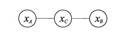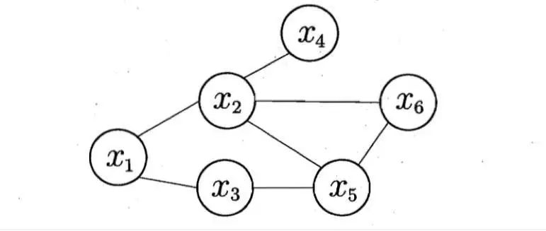 在考察马尔可夫随机场之前,我们先来考察一下马尔可夫随机场中的势函数。势函数Φ的作用是定量刻画变量级XQ中变量之间的相关关系,它应该是非负函数,且在所偏好的变量取值上有较大的函数值,例如,对于下面的图: