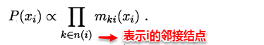 若将变量求和操作看作是一种消息的传递过程,信念传播可以理解成:一个节点在接收到所有其它节点的消息后才向另一个节点发送消息,同时当前节点的边际概率正比于他所接收的消息的乘积: