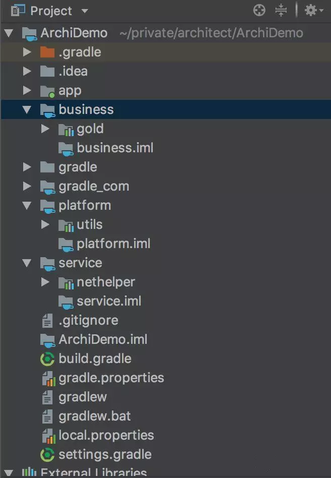 其中基础组件层主要包括:网络库、日志库、路由库等。但在实际的开发过程中,往往需要对这些基础库封装一层,比如对网络库用观察者模式封装一层来实现UI移步加载、路由需要自定义拦截器等,这一层就是我们的service层,也就是功能组件层。Service层的主要目的是向外提供服务,而业务组件则是具体的业务逻辑。具体的分包示意图如下: