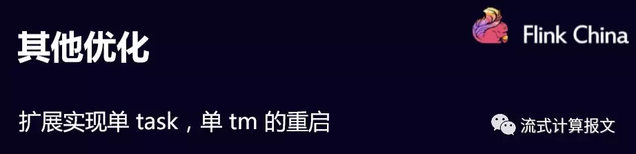 在迁移的过程中我们有一些其他优化,比如说J storm是能够支持task和work维度的重启的,Flink这一块做得不是特别好。我们在这方面做了一些优化实现了一个single task和single tm粒度的重启,这样就解决部分作业因为task重启导致整个作业全部重启。
