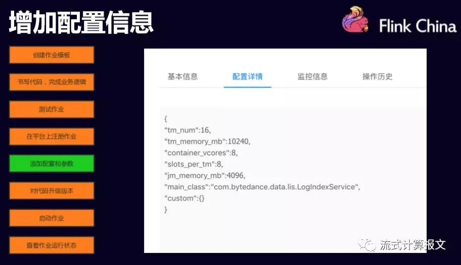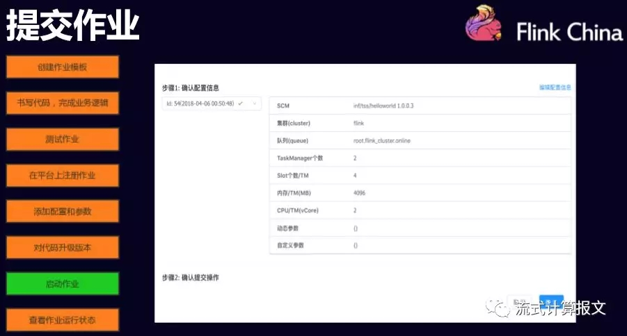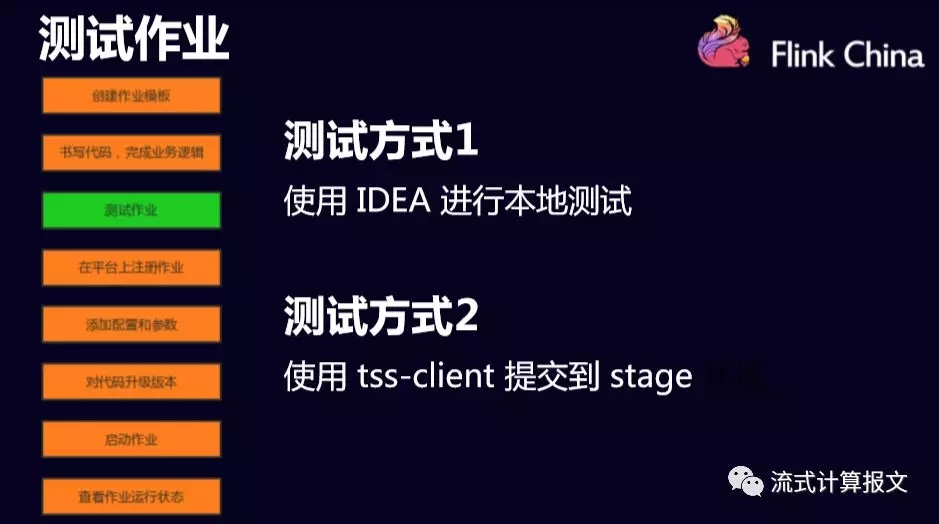 我们测试作业基本上是用IDEA或者local模式去测试,也提供了一个脚本去提交作业,通过这个脚本提交到stage环境上面。在提交注册在平台上面去注册这个作业,然后添加一些配置信息。