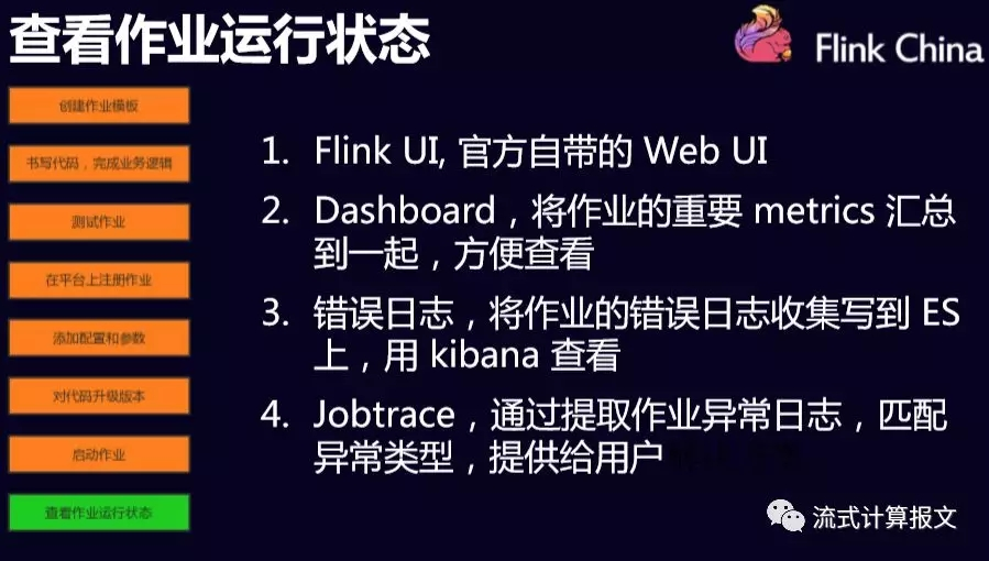 提交完一个作业之后,用户可能想看作业运行的状态怎么样,我们通过四种方式去给用户展示他的作业运行状态的。