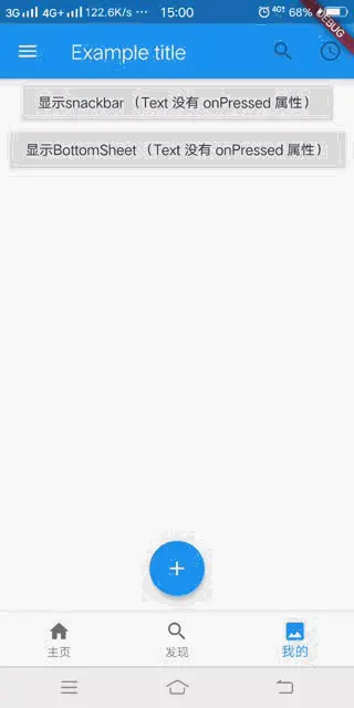 在Material设计中定义的单个界面上的各种布局元素,在 Scaffold 中都有支持,比如 左边栏(Drawers)、snack bars、以及 (底部弹窗)bottom sheets。(底部导航栏)BottomNavigationBar