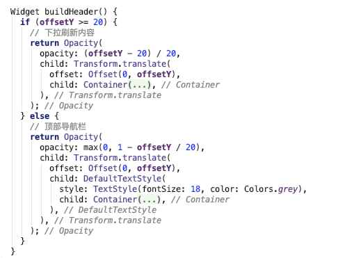 透明度这里可以采用Flutter提供的Opacity部件,这是专门用来进行透明度变化的,用法也很简单。