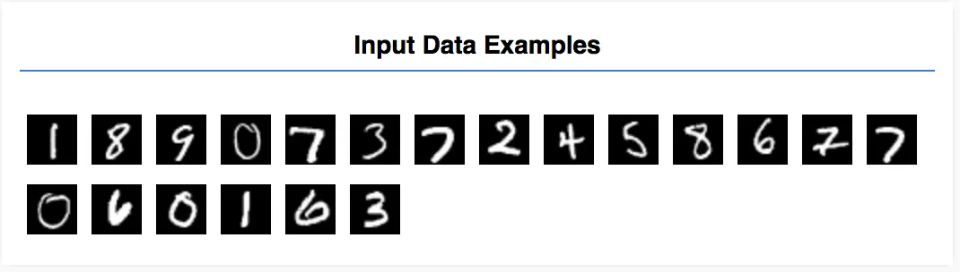 有过机器学习知识的朋友,应该对MNIST数据集不陌生,这是一套28x28大小手写数字的灰度图像,包含55000个训练样本,10000个测试样本,另外还有5000个交叉验证数据样本。tensorflow python提供了一个封装类,可以直接加载MNIST数据集,在TensorFlow.js中需要自己写代码加载: