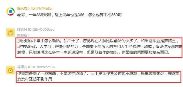 也有网友觉得年龄不是问题。那说明你平常不怎么动脑。我四十了,感觉现在大脑比以前转的快多了。如果刚毕业是奔腾三,现在起码i7。人学习,解决问题能力,是需要不断深入思考和人生经验进行加成,假设你发现越来越慢,只能说明这么多年一点长进没有,但是随着年龄增长,你面临的问题更加复杂而已。