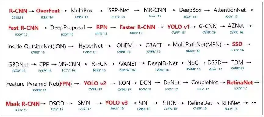目标检测领域,其实有很多方法,其发展史如下所示: