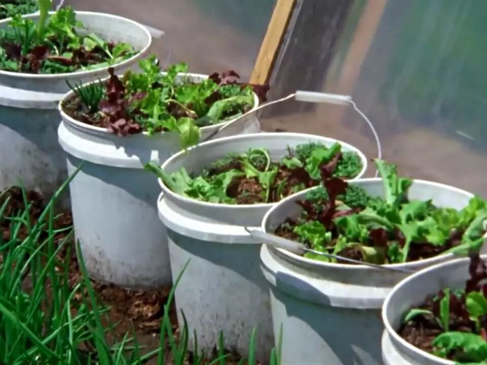 这一排在桶里的沙拉菜,即便没有多大地方的人也可以种。