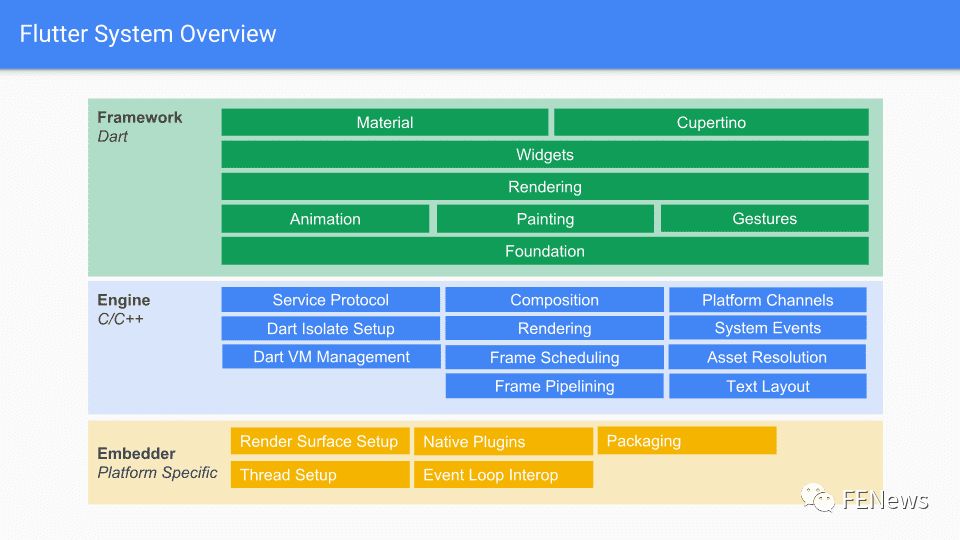 Skia:(渲染/GPU 后台), 它在Android和Fuchsia上使用FreeType进行字体渲染,在iOS上使用CoreGraphics进行字体渲染。