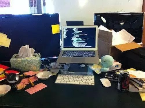 但现实中,在IT公司里,码农的电脑桌其实都是这样的