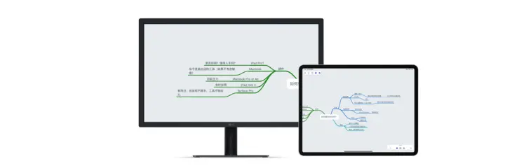 其实 MindNode 5 就已经完美支持了外接显示屏拓展。将 iPad Pro 接入显示器后,MindNode 5 在显示器上可以全屏镜像显示,所有操作的同步也非常流畅。