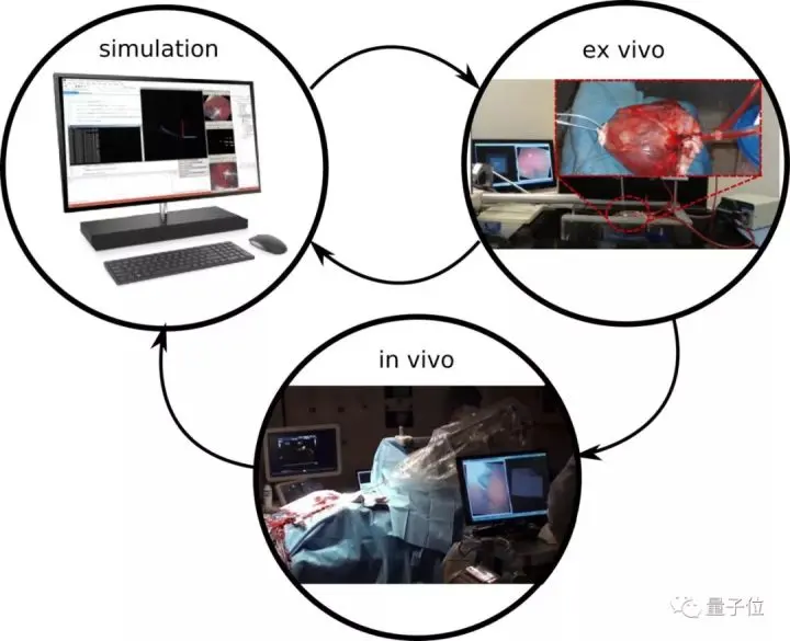 为了评估自动导航算法,研究人员比较了自动导航和远程操作(领域内专家用操纵杆控制)和手动控制(手持导管)三种不同手术方式的结果。