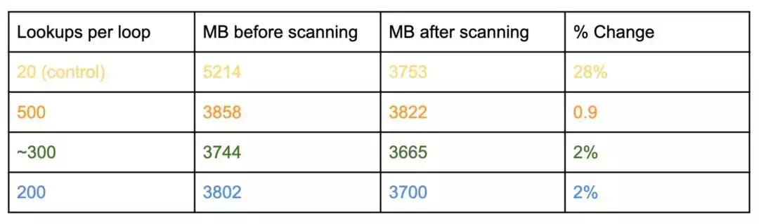 配置。我决定测试三个值,并在其中一个有问题的集群中运行这三个值,然后进行扫描,并测量内存使用前后的差异。如果内存使用前后的差异较大,表明有大量过期数据等待收集。这项测试最初在记忆使用方面有积极的结果。