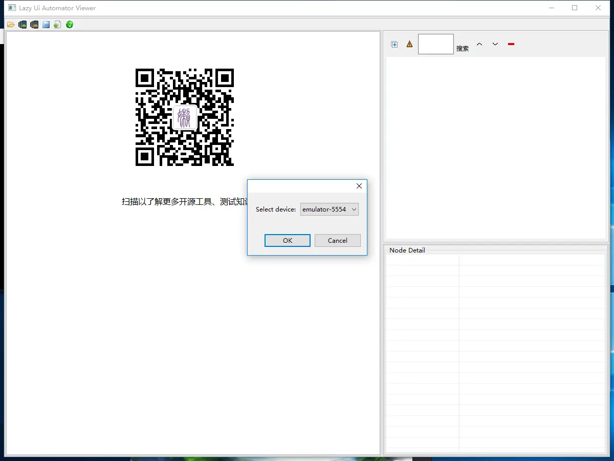 选择5555端口选项 点击OK!出现下图, 到此uiautomatorviewer工具的使用介绍完毕