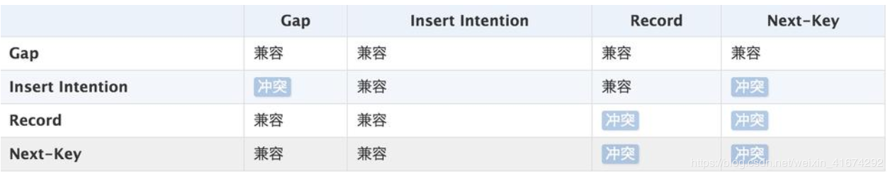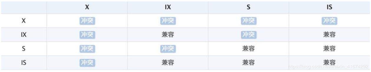 下面是各种锁之间的对应兼容情况(ps:在某一篇博客上看到,忘了是哪一篇,觉得好就截下来了嘻嘻):