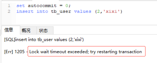 → 客户端2:开启事务,往数据库中添加id为2的记录时会发现该操作会被阻塞!