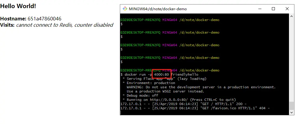 docker run -p 4000:80 friendlyhello