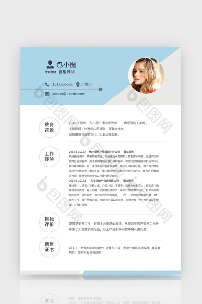 像上面这个从某个简历模板网站看到的,就是错误的例子,除非教育背景和工作经验有很多亮点,否则千篇一律的教育背景很容易产生审美疲劳。