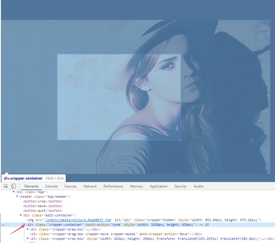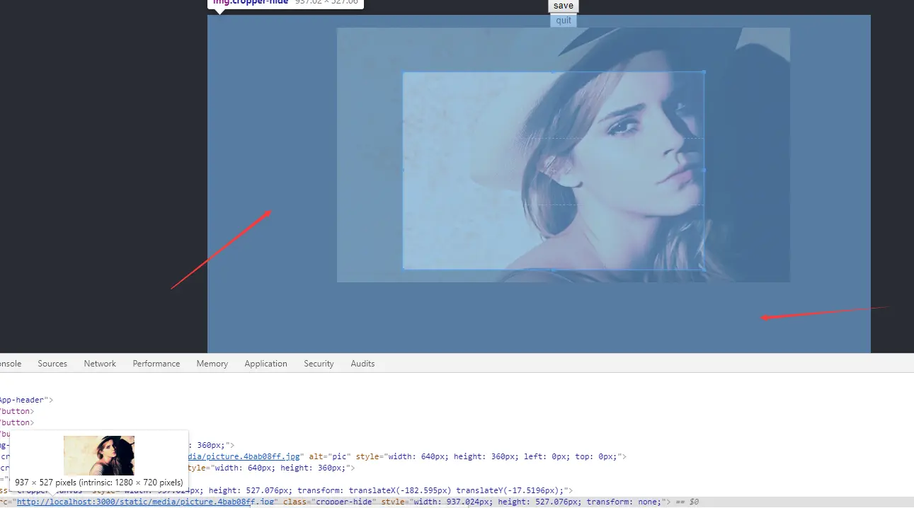 cropperjs初始化后的元素,是会与初始化对象img处在同一dom层级,也就是说如果我们直接对展示img进行初始化的话,编辑区域展示将会受父元素,如图,放大图片时候会不方查看超出部分