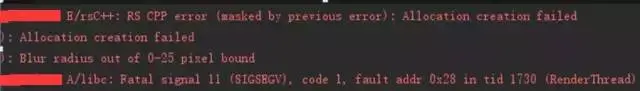11.三星机型报错E/rsC++(16241): RS CPP error: Blur radius out of 0-25 pixel bound