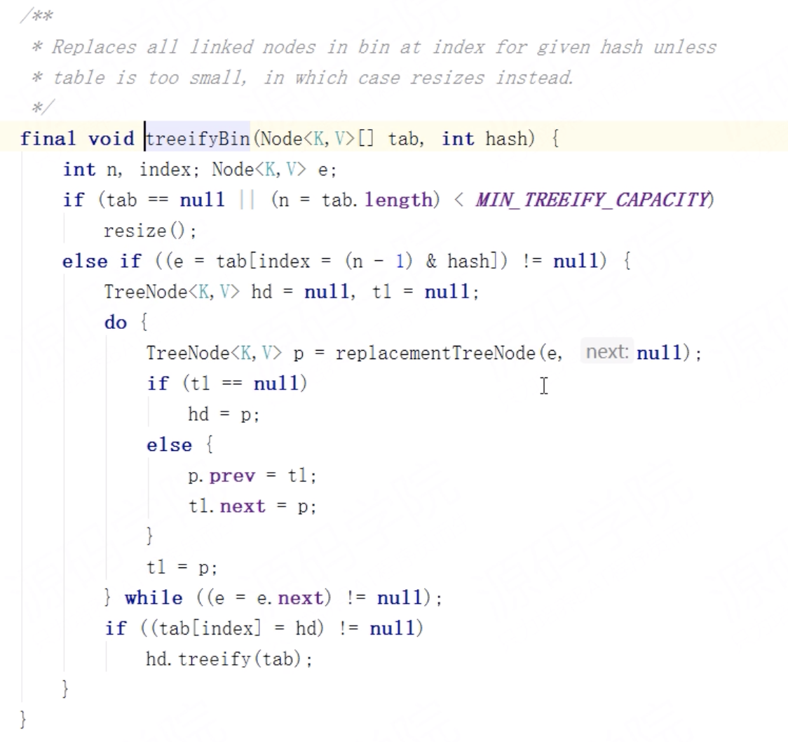 - 原因是因为链表过长,解决平衡性,JDK8 引入红黑树来解决链表查找的速度,但同样也带来一个问题:插入变慢,它默认有个阀值默认8才会转变成红黑树,源码如下: