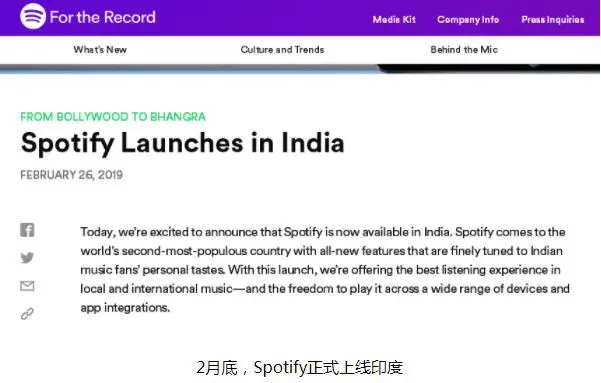 盗版音乐网络资源的可及性降低,同时相较于盗版光碟,流媒体音乐的会员不管是价格还是便捷性都有着巨大的吸引力,这两方面带来的是印度音乐用户整体付费率的大幅提升:印度Spotify新增付费用户超过了一百万。另外,目前印度音乐市场已经排在全球第15位,发展势头迅猛。