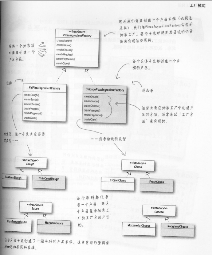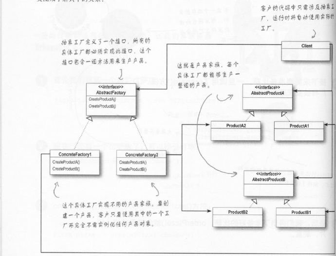 首先,来看下上次遗留的抽象工厂模式的问题。抽象工厂允许客户使用抽象的接口来创建一组相关的产品,而不需要知道(或关心)实际产出的具体产品是什么。这样一来,客户就从具体的产品中被解耦。让我们看看类图来了解其中的关系。