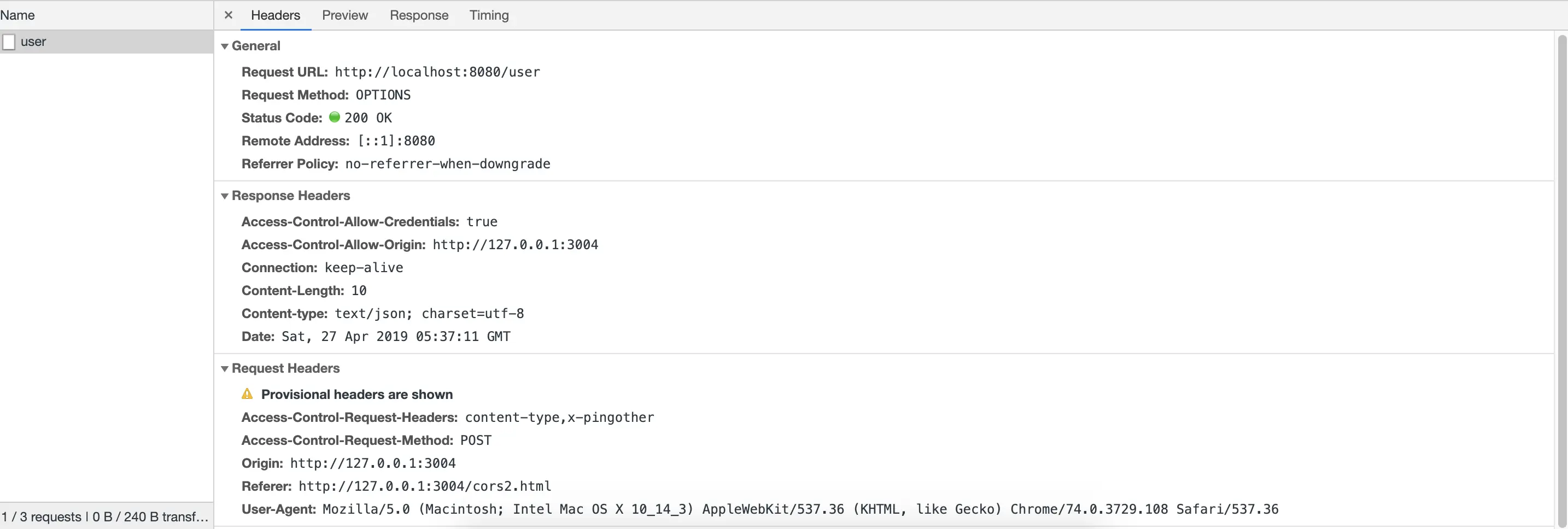 cors2.html:1 Access to XMLHttpRequest at 'http://localhost:8080/user' from origin 'http://127.0.0.1:3004' has been blocked by CORS policy: Request header field x-pingother is not allowed by Access-Control-Allow-Headers in preflight response.