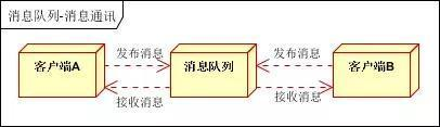 客户端A和客户端B使用同一队列,进行消息通讯。