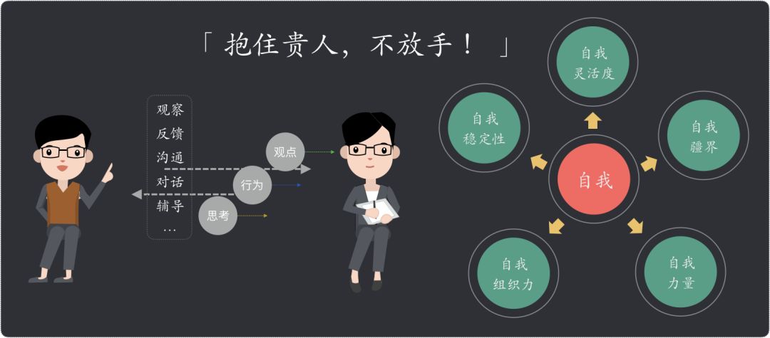 贵人就应该紧紧抱住,通过和贵人建立关系,贵人的观察,反馈,双向沟通,对话,辅导等,可以帮助自己从互动的信息中生成自己的思考,行为和观点,这些思考,行为和观点会影响自我,完善自我。