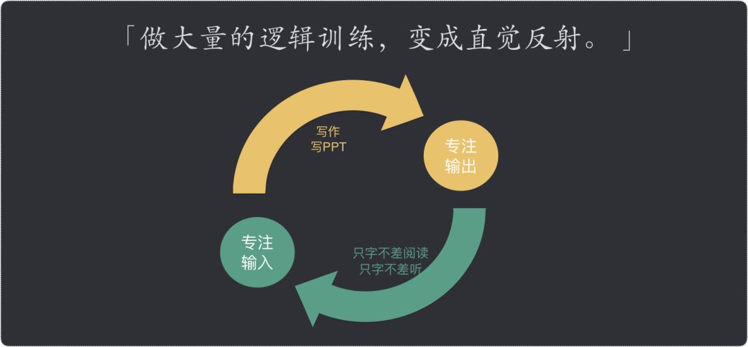 定期做PPT进行分享,这是读书学习过程中无法替代的高质量逻辑训练方式,是一种更高要求的逻辑抽象的训练,同时通过输出检测学习和成长质量,训练的次数多了,书上的逻辑就变成了自己直觉反射,丰富了自己95%区域里有效的结构化知识。