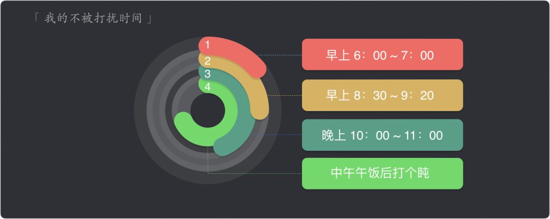 分享下我如何找到不被打扰的时间用于投资自己的成长,因为每个人的工作性质不同,找到不被打扰的时间长度不一样,比如程序员这个行业,加班很多,比如我在公司时间平均有11-12小时,即便在这种情况下,还是能够在工作以外找到不被打扰的时间,更何况工作时间没有12小时的朋友呢!我的不被打扰时间: