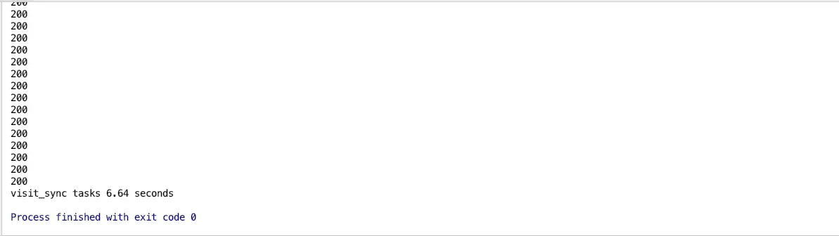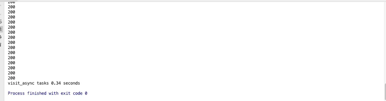 运行之后发现,耗时0.34秒,效率提升20多倍。(关于如何有逼格地分析异步效率,可以参考前面写过的一篇文章。)