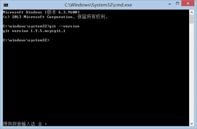 这是对上图的解释,不需要了解请直接跳过 Git的默认设置下,出于安全考虑,只有在Git Bash中才能进行Git的相关操作。按照上图进行的选择,将会使得Git安装程序在系统PATH中加入Git的相关路径,使得你可以在CMD界面下调用Git,不用打开Git Bash了。 一样的,我们来检查一下Git是不是安装正确了,打开命令行,输入: