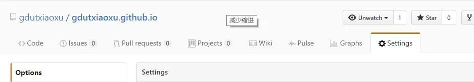 接下来开启gh-pages功能,点击界面右侧的Settings,你将会打开这个库的setting页面,向下拖动,直到看见GitHub Pages,如图: