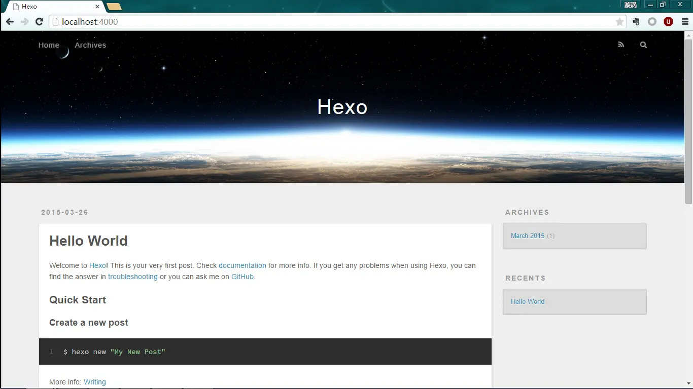 到目前为止,Hexo在本地的配置已经全都结束了。