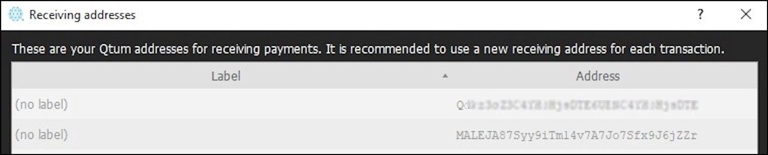 以“M”开头的Qtum地址是“p2sh-segwit”(支付给遗留包装的脚本哈希隔离见证)地址。导入私钥还会在钱包中创建另外两个以“Q”和“qc1”开头的地址: