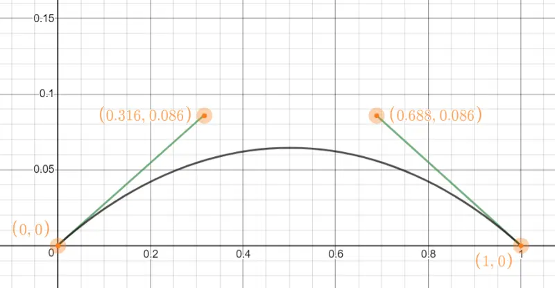 这里使用贝塞尔曲线绘制,需要4个点,分别是:起点,终点和两个控制点,像图中那样,移动控制点就能改变曲线形状。你可以在在线工具中尝试: