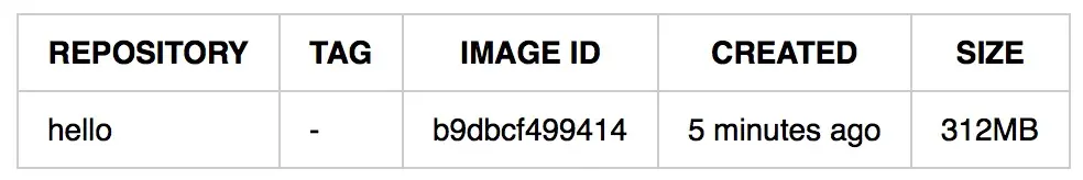 REPOSITORY TAG IMAGE ID CREATED SIZE