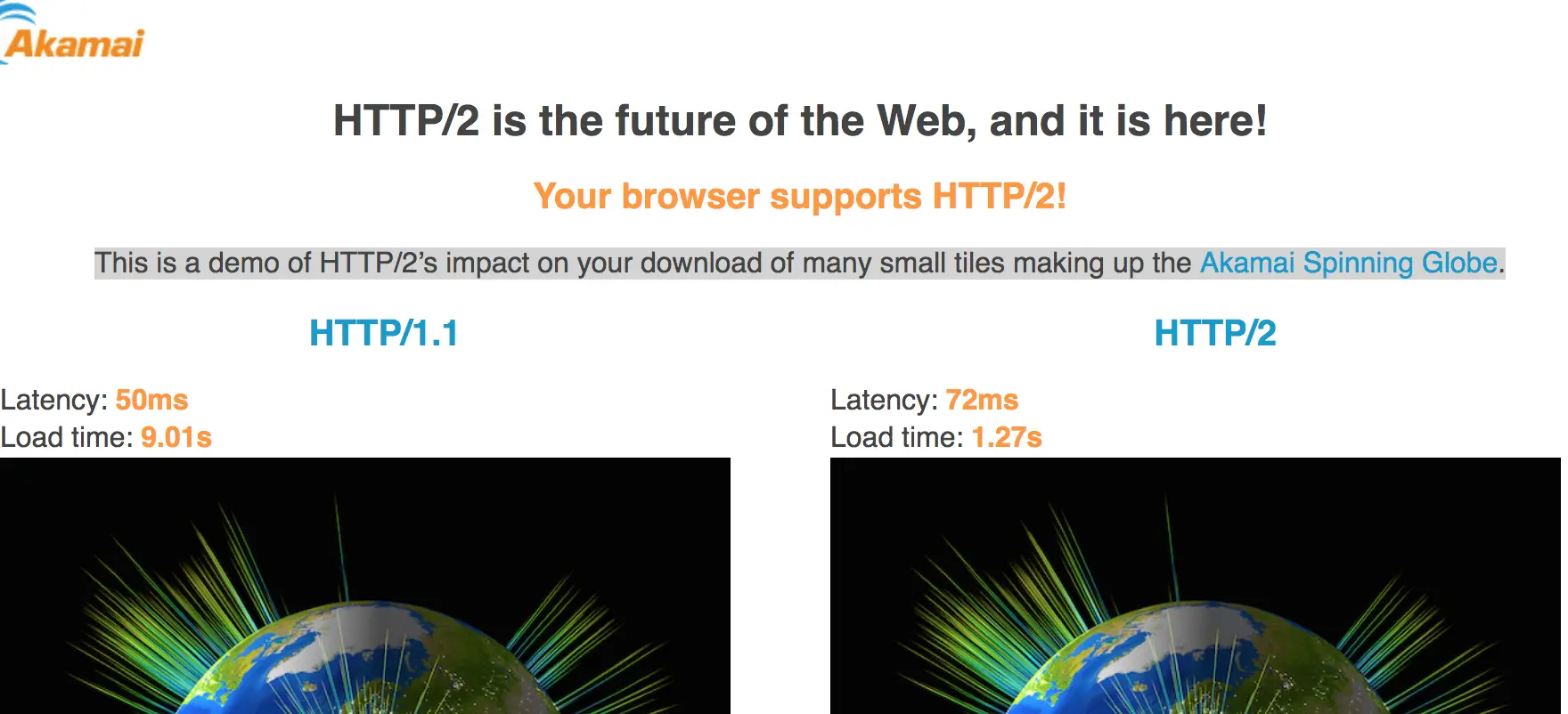 理论上HTTP/2.0会比HTTP/1.1有一倍多的性能提升,弱网环境下,性能提升会更加明显。 HTTP/1.1 与2.0 性能比较