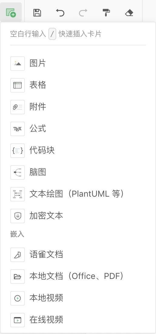 Q:语雀的文档中支持插入哪些内容?