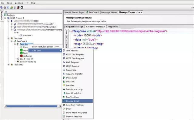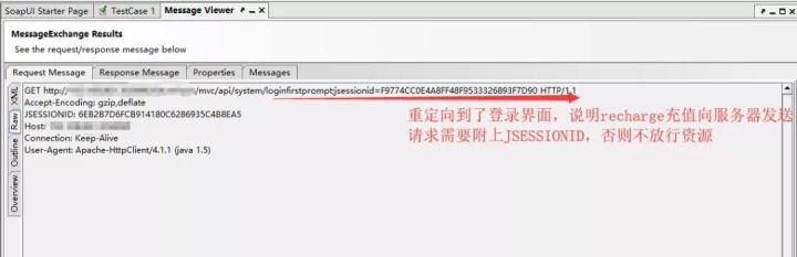 TestCase运行结果中,双击login运行step查看Respouse Message,切换到Raw视图,能看到JSESSIONID相关信息。