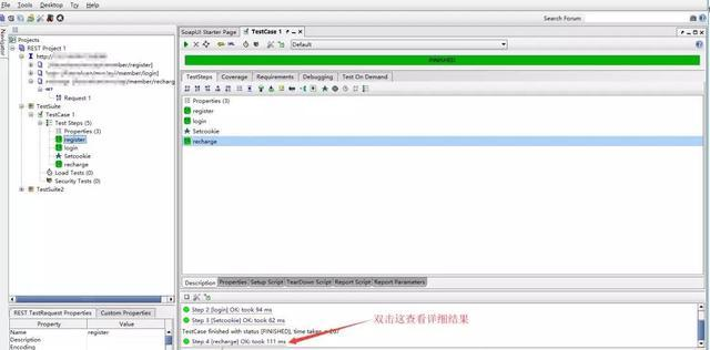 使用soapui构建好测试用例、设置断言后,运行结果如下: