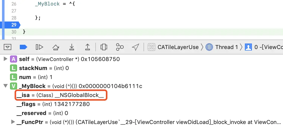 - _NSConcreateGlobalBlock 全局的静态block,不会访问任何外部变量。