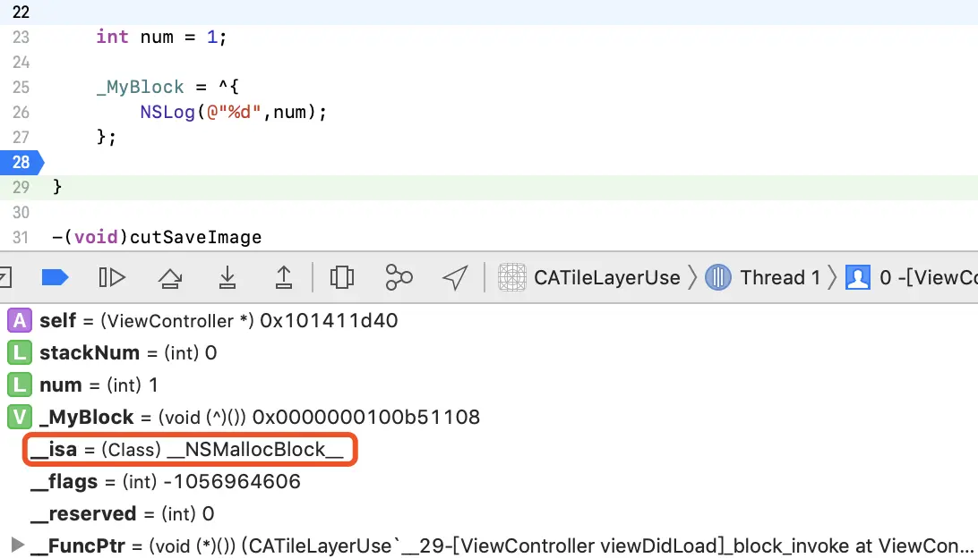 - _NSConcreateStackBlock 栈区的block,当函数返回时会被销毁。