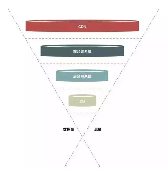 这样就像漏斗一样,尽量把数据量和请求量一层一层地过滤和减少了。
