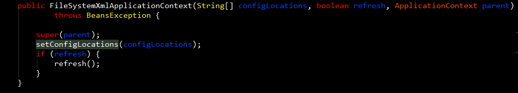 先回到IOC容器的初始化入口,也就是看一下refresh方法,这个方法的最初是在FileSystemXmlApplicationContext的构造函数中被调用的,它的调用标志着容器初始化的开始,这些初始化对象就是BeanDefinition数据。
