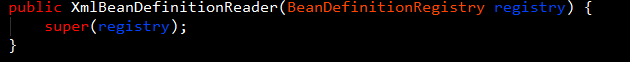 这里可以清楚的看到读入器的创建和配置,这里AbstractXMLApplicationContext将DefaultListableBeanFactory作为参数注入了BeanDefinitionReader,但注意,其注入是以BeanDefinitionRegistry接口的形式:
