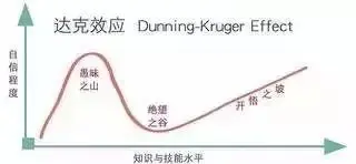 心理学上有个著名的邓宁-克鲁格效应,又称达克效应。大意是,人很容易对自我产生认知偏差,最简单来说,就是会过于高估自己。达克效应的曲线图: