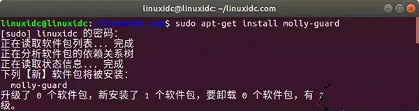 linuxidc@linuxidc:~/linuxidc.com$ sudo apt-get install molly-guard 当molly-guard在后台运行时,它将检测诸如poweroff之类的命令,并报告已检测到SSH会话。 然后,您可以选择输入服务器的主机名以确认关闭,或者按Ctrl + C取消。 有用!